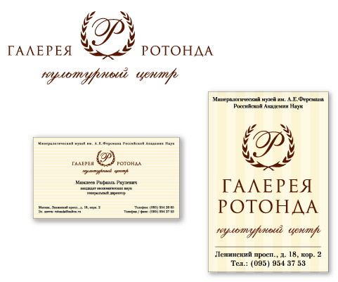 Клуб "Галерея Ротонда" - эксцентричное и эклектичное развлекательное заведение, расположенное в великолепном здании, являющемся частью архитектурного ансамбля Института Минералогии Российской Академии Наук в Нескучном Саду. Архитектура здания дала название клубу и определило его визуальный образ. Агентством Omnibus был создан логотип и разработан фирменный стиль клуба, создающий впечатление скромной роскоши.