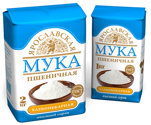 По заказу ярославской компании ОАО «Русьхлеб» агентство Omnibus разработало дизайн упаковки для муки, производимой предприятием.